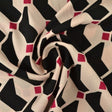 RÅHVIDT VISKOSE STOF MED SORT GEOMETRISK PRINT – LET FALD & ELEGANT MAT GLANS