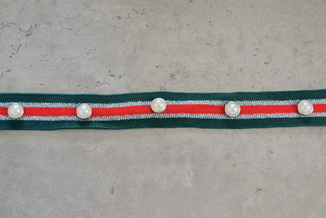 GRØN, SØLV OG RØD BÅND MED PERLER 25MM