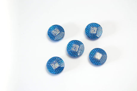 BLÅ KNAPPER MED SØLV GLIMMER 5 STK.