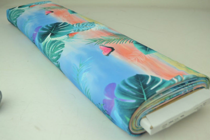 BLÅ LYCRA – BLADE & SOMMERFUGLE, 4-VEJS STRÆK & HURTIGTØRRENDE