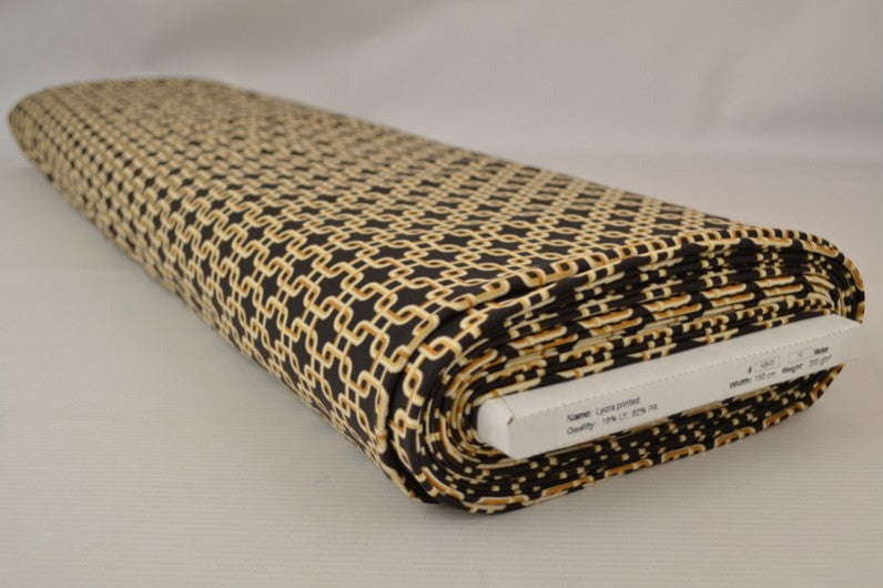 MØRKEBRUN LYCRA – KÆDEPRINT, 4-VEJS STRÆK & HURTIGTØRRENDE