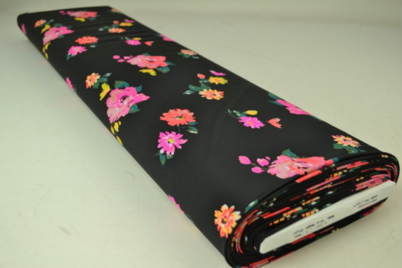 SORT LYCRA – AKVAREL BLOMSTER, 4-VEJS STRÆK & HURTIGTØRRENDE