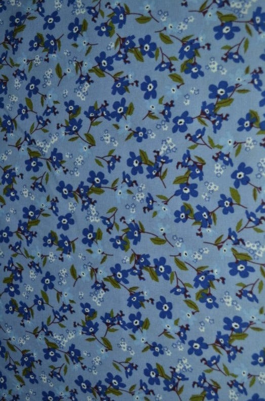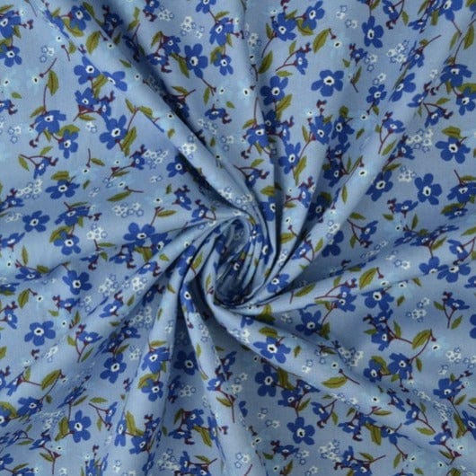 BLÅ BOMULDSPOPLIN M. BLÅ ANEMONER