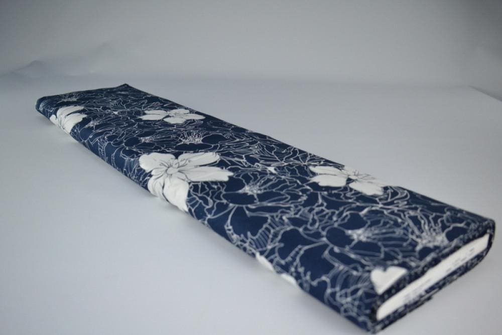 BLÅ BOMULDSPOPLIN MED HVID BLOMSTERPRINT er restordret og sendes så snart det er tilbage på lager.