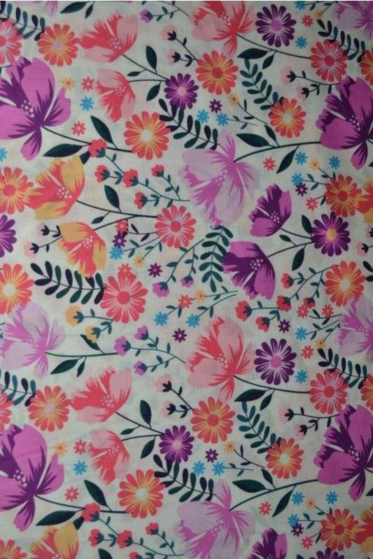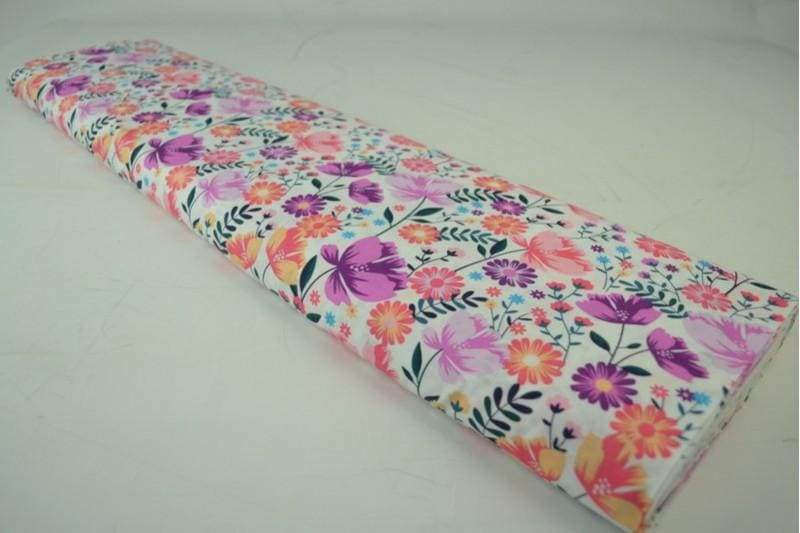BOMULDSPOPLIN M. LYSERØDE / LILLA BLOMSTER