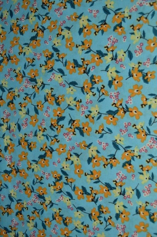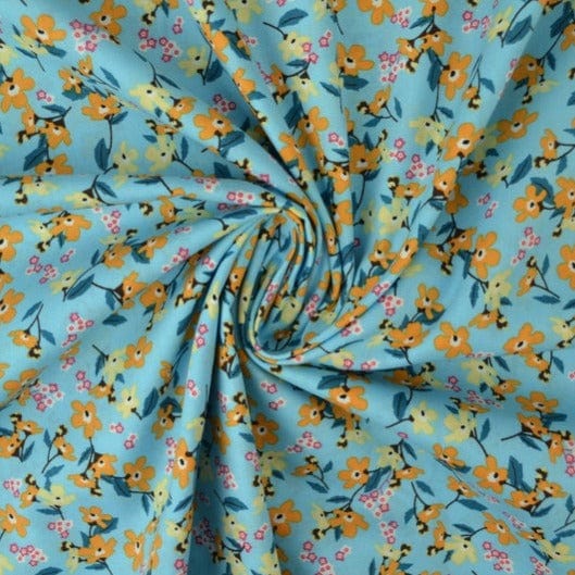 LYSEBLÅ BOMULDSPOPLIN M. GULE ANEMONER