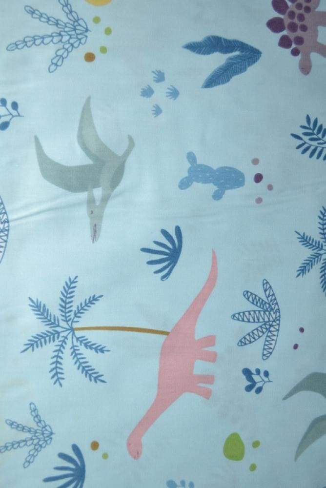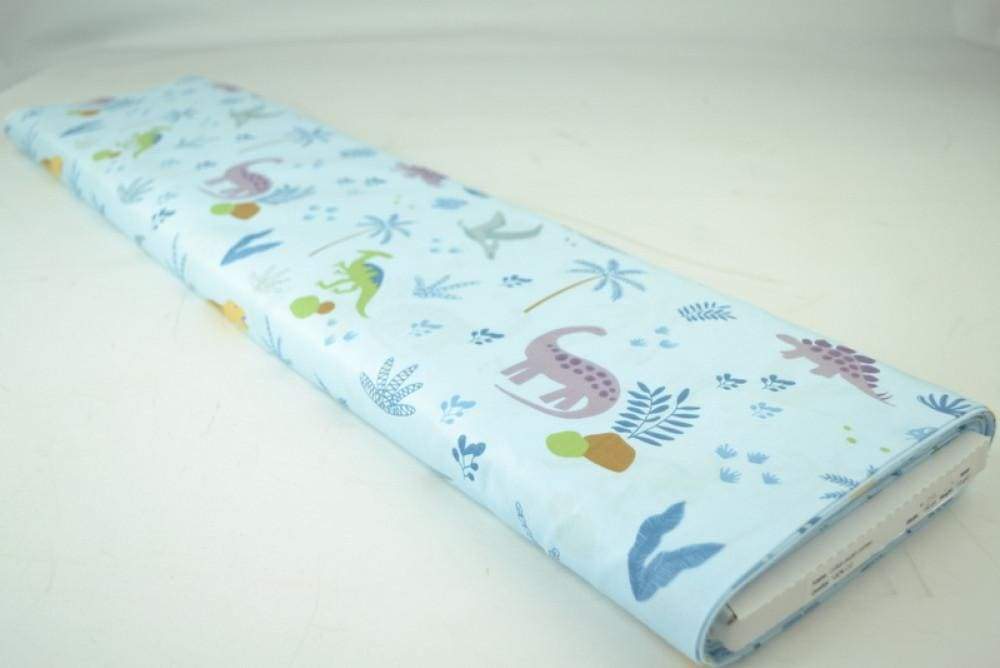 LYSEBLÅ BOMULDSPOPLIN MED DINOSAURER