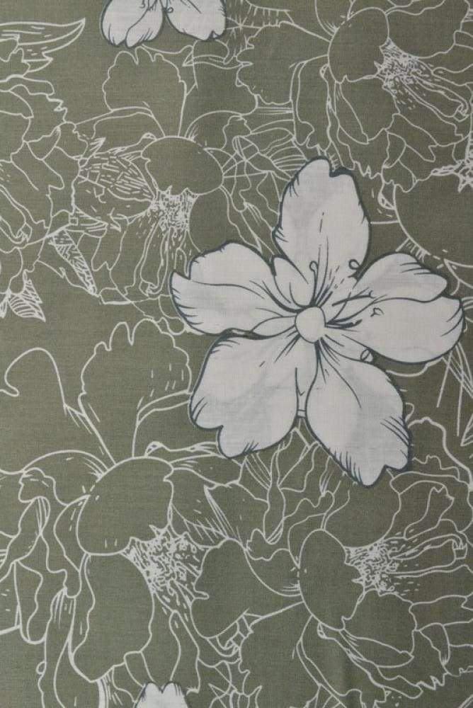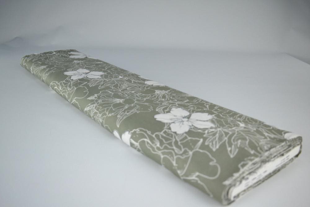 LYSEGRÅ BOMULDSPOPLIN MED HVID BLOMSTERPRINT