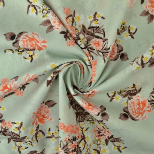 MINTFARVET BOMULDSPOPLIN M. PÆONER