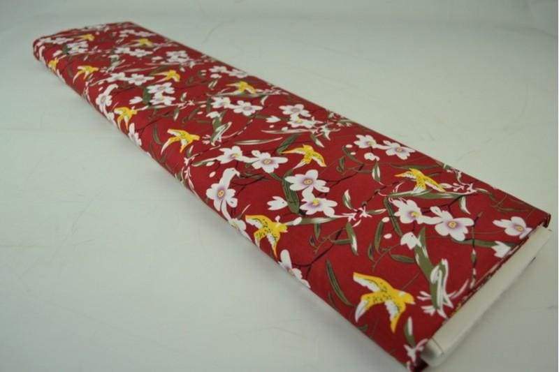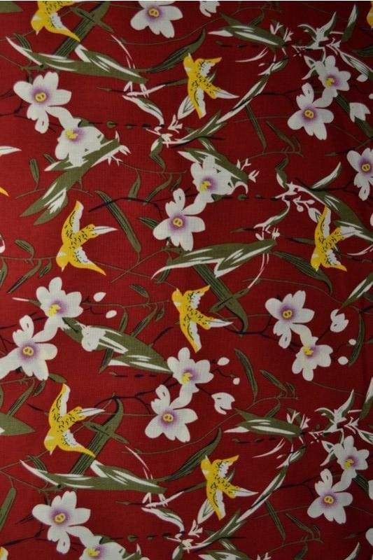 RØD BOMULDSPOPLIN M. GULE FUGLE