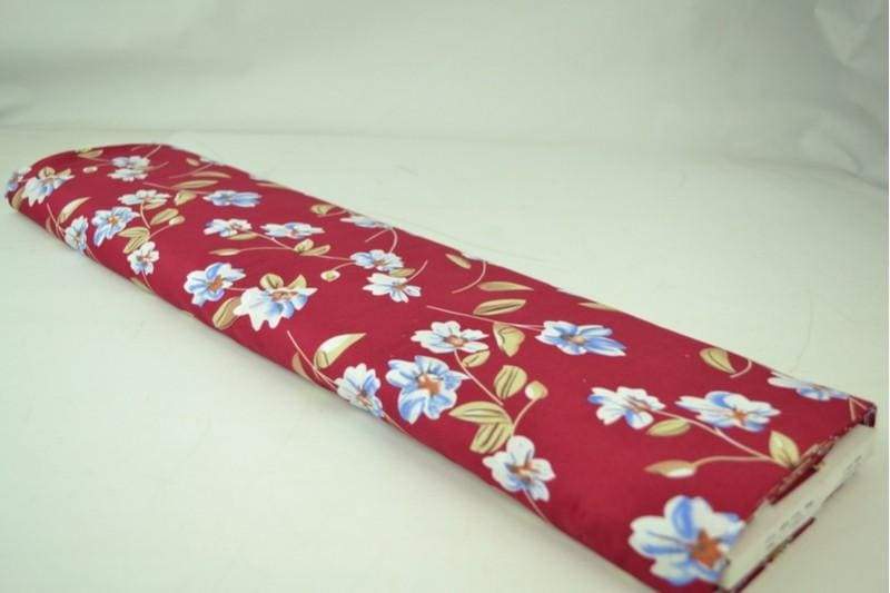 RØD BOMULDSPOPLIN MED HVID BLOMSTERPRINT