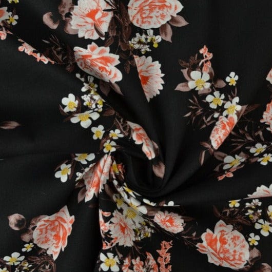 SORT BOMULDSPOPLIN M. PÆONER