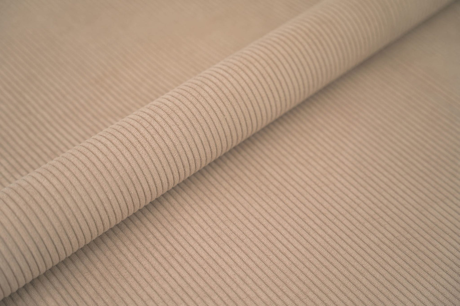 Vores Cord møbelstof er en strikket jernbanefløjl med baner der er ca. 5 mm. brede. Stoffet er produceret i Europa, består af 100% polyester, og har en kort, blød luv.