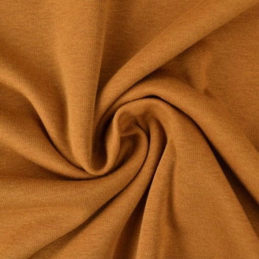 MØRK OKKERGUL BØRSTET SWEATSHIRTSTOF – BLØD ISOLI MED STRÆK