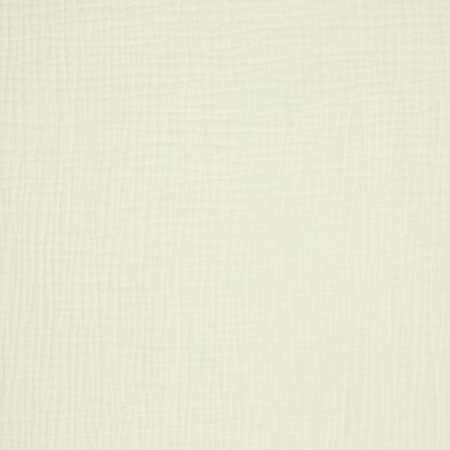 Vores double gauze stof består af to lag af løst vævet bomuldsgaze; også kaldet musselin. De to lag musselin er med lette sting og i et regelmæssigt mønster syet sammen, hvorved tekstilet nu fremstår som ét og ikke længere er så transparent. Den løse vævning og rynkede overflade giver et luftigt og svalende materiale samtidig med at de dobbelte lag giver stoffet en vis tyngde og et godt fald.