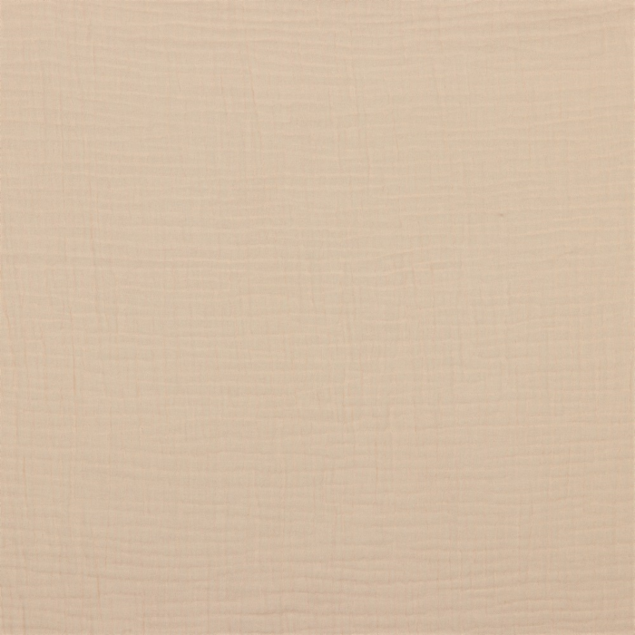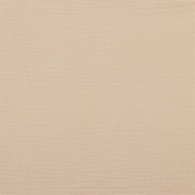 Vores double gauze stof består af to lag af løst vævet bomuldsgaze; også kaldet musselin. De to lag musselin er med lette sting og i et regelmæssigt mønster syet sammen, hvorved tekstilet nu fremstår som ét og ikke længere er så transparent. Den løse vævning og rynkede overflade giver et luftigt og svalende materiale samtidig med at de dobbelte lag giver stoffet en vis tyngde og et godt fald.