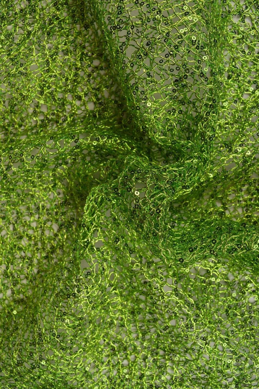 LIMEGRØN NET PAILLETSTOF – SMÅ 2–3 MM PAILLETTER, UDEN STRÆK