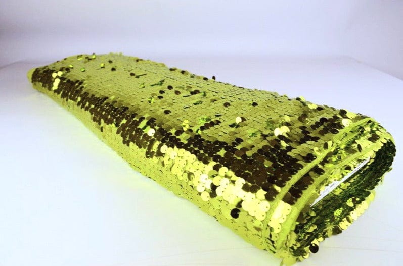 LIMEGRØN PAILLETSTOF – STORE 8 MM PAILLETTER & ENVEJS STRÆK