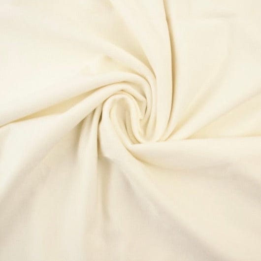 Ensfarvet french terry stof. Dette strikkede stof er blødt og med stræk i længdegående retning. French terry er strikket med små løkker på bagsiden der giver en blød og behagelig følelse mod huden. Metervaren er absorberende, varm og hyggelig og kan f.eks. bruges til let joggingtøj, huer, bukser, t-shirts, pullovers og børnetøj.