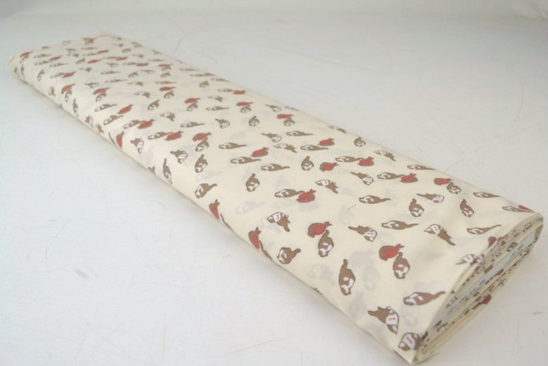 RÅHVIDT VISKOSE STOF MED SPURV OG RØDKÆLK PRINT – LET FALD & ELEGANT MAT GLANS