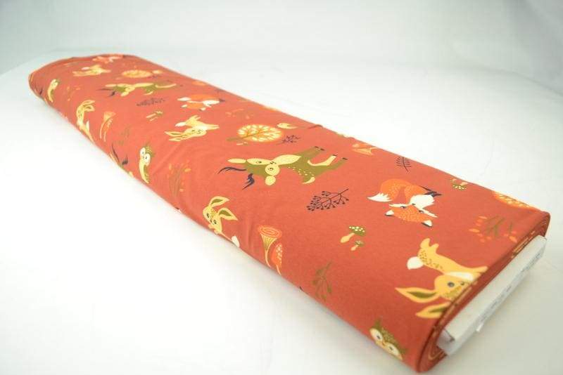 RØD BOMULDSJERSEY M. KANIN, RÆV & RÅDYR