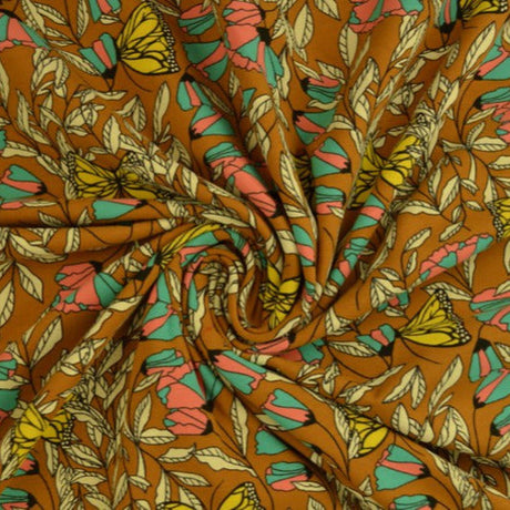 OKKERGUL NERVØS VELOUR – STRIKKET, STRÆKBAR & GLANSFULDT FALD
