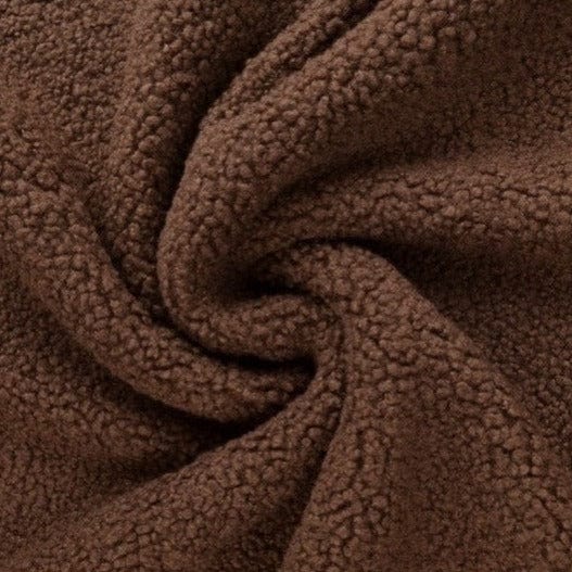 Teddy stof er blødt, fluffy og har en overflade der minder om fåreskind.