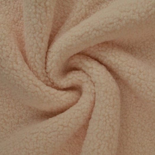 Teddy stof er blødt, fluffy og har en overflade der minder om fåreskind.