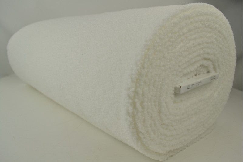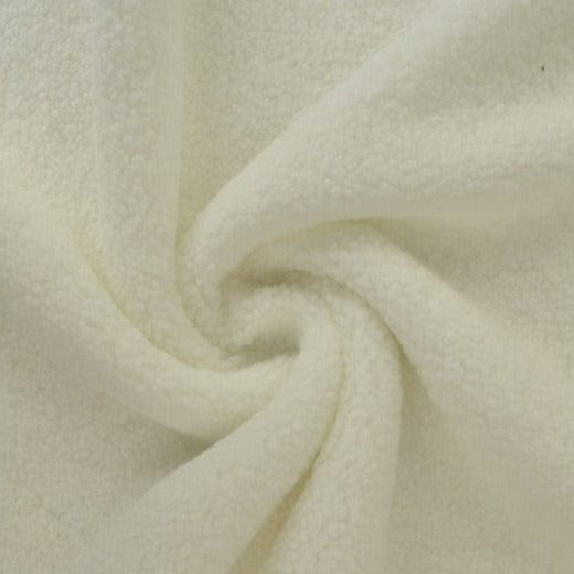 Teddy stof er blødt, fluffy og har en overflade der minder om fåreskind.