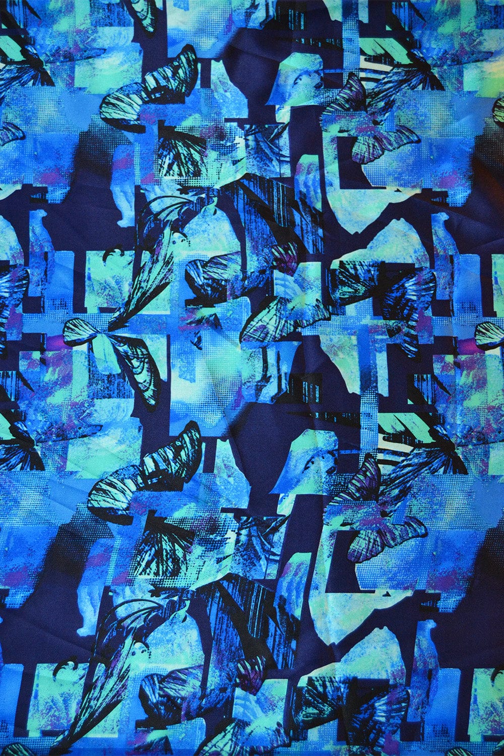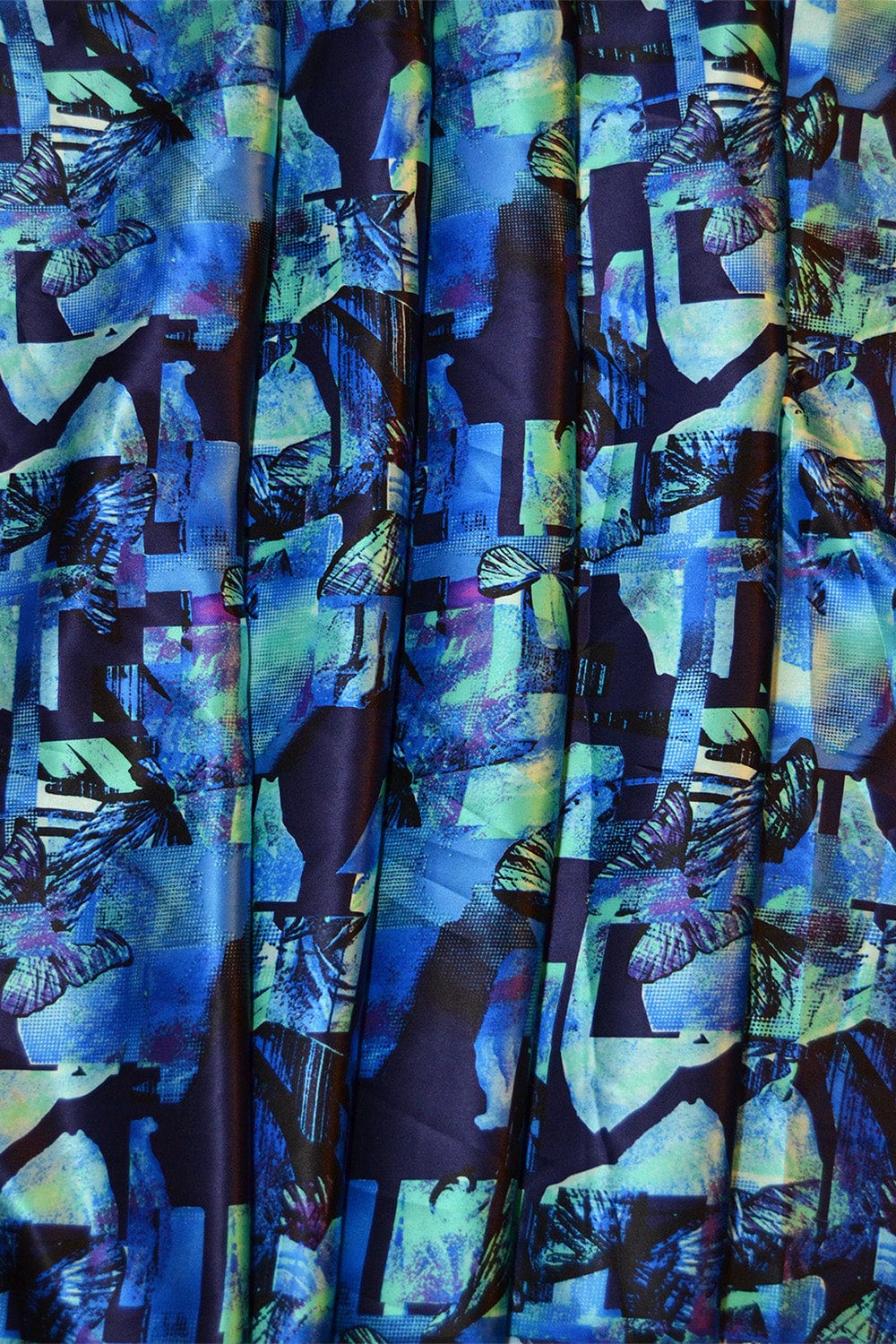 BLÅ SILKE MED SOMMERFUGLE