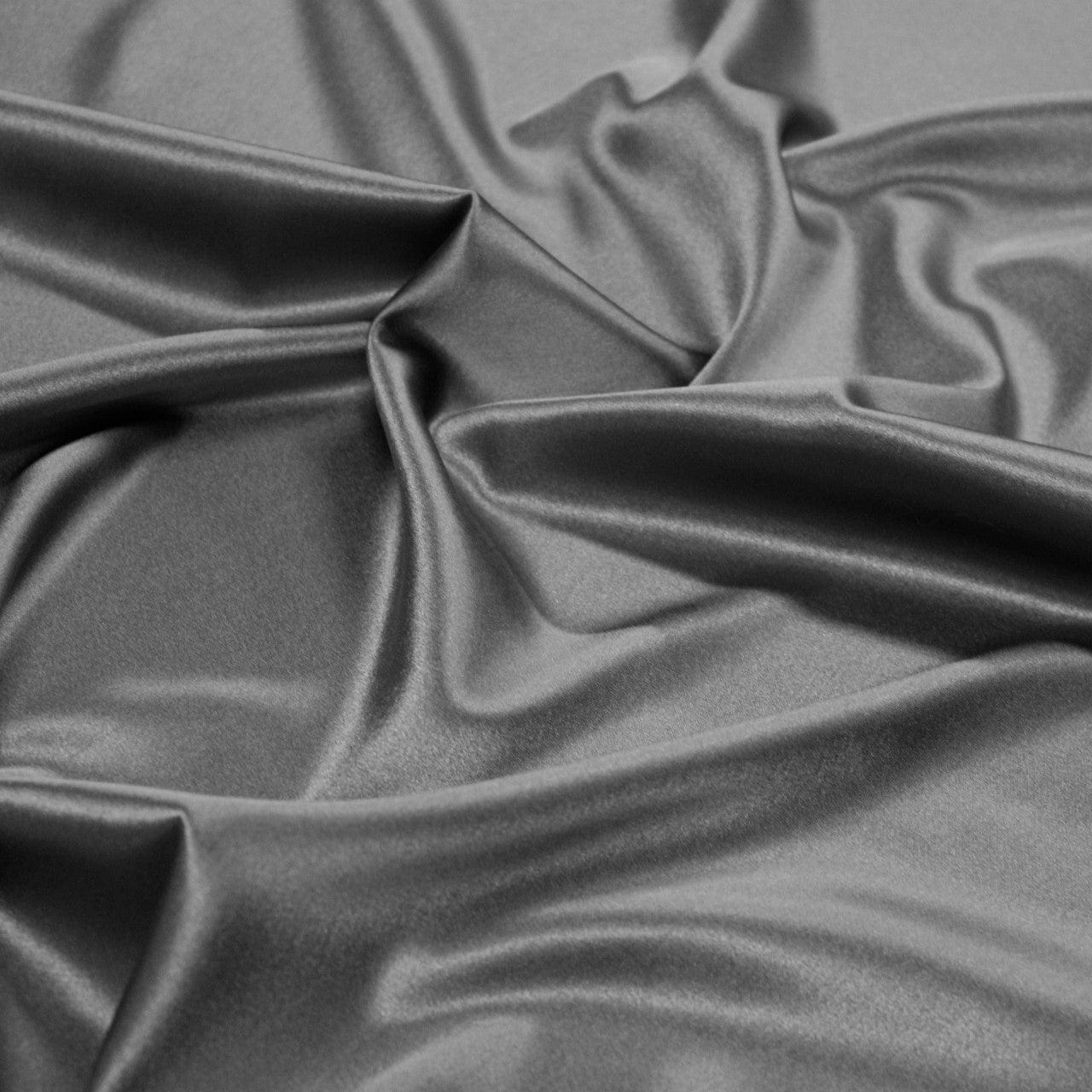 GRÅ SILKESTOF I SATINVÆVNING MED STRÆK