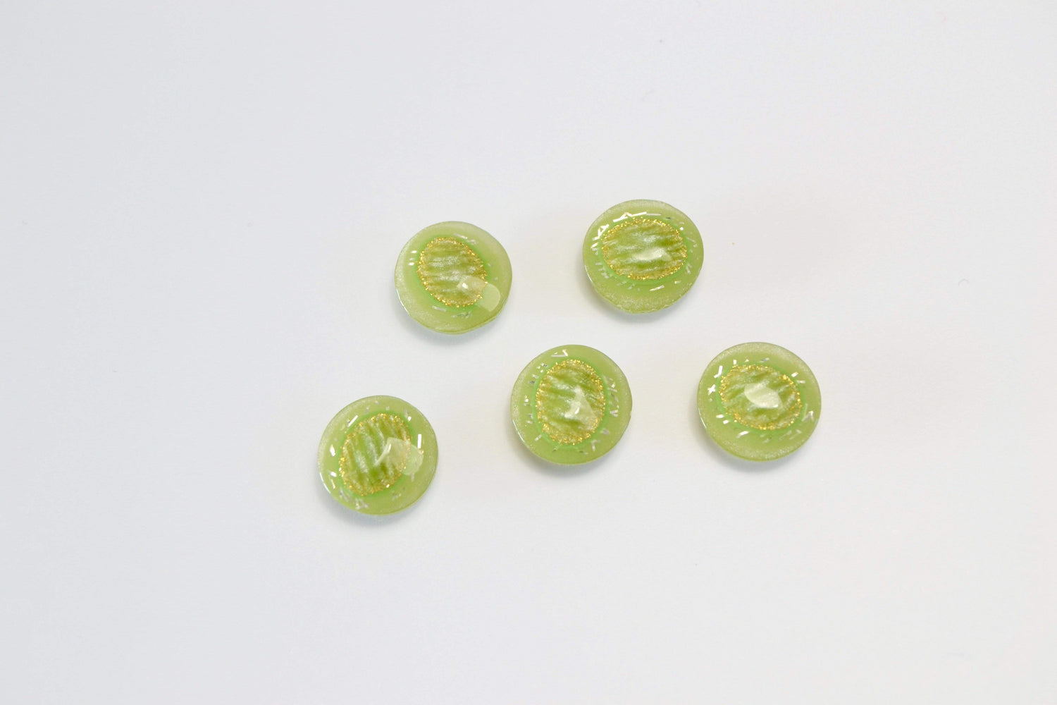 GRØNNE KNAPPER MED GULD GLIMMER 5 STK.