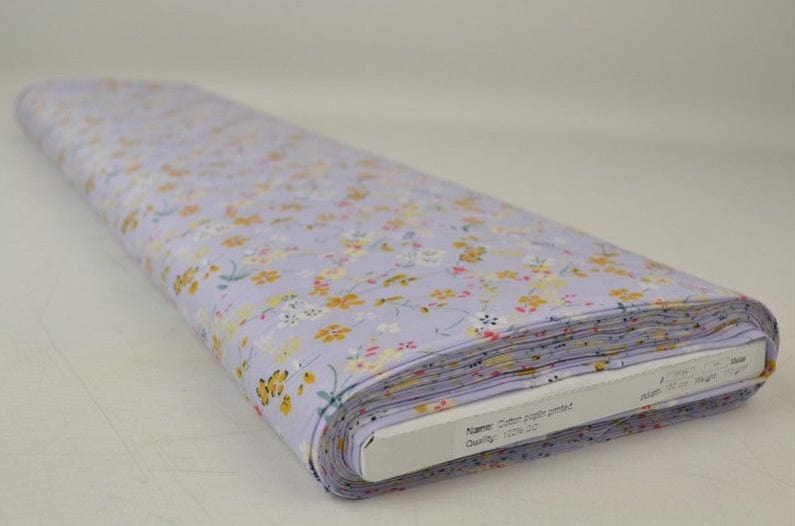 LAVENDEL BOMULDSPOPLIN M. STORKENÆB I HVID, GUL OG PINK