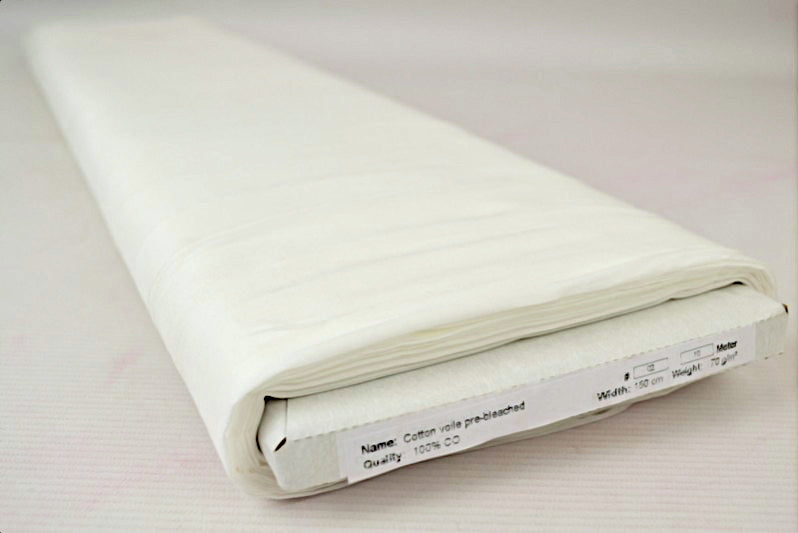 Udover farven har materialet de samme egenskaber som andet bomuldsstof - det er åndbart, absorberende og behageligt. Voile er en lille smule gennemsigtigt, nemt at arbejde med og kan bruges til beklædning som sommerbluser og kjoler såvel som boligdekoration som f.eks. pyntegardiner. Det er især velegnet til designs som involverer plissering, rynkning eller drapering. Det kan med fordel bruges til DIY-projekter hvor du selv ønsker at farve stoffet. Derudover er ubleget bomuldsstof ofte brugt af skræddere og designere for at teste et mønsters pasform og udseende så der kan laves eventuelle rettelser før der arbejdes med mere kostbare tekstiler. Det er altså et utroligt alsidigt materiale, og det er næsten kun fantasien der sætter grænsen for hvad det kan bruges til.