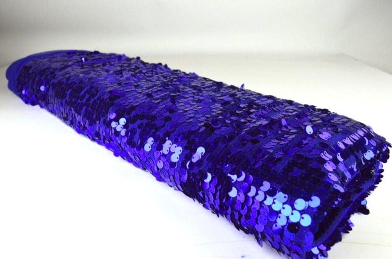 MØRKEBLÅ PAILLETSTOF – STORE 8 MM PAILLETTER & ENVEJS STRÆK