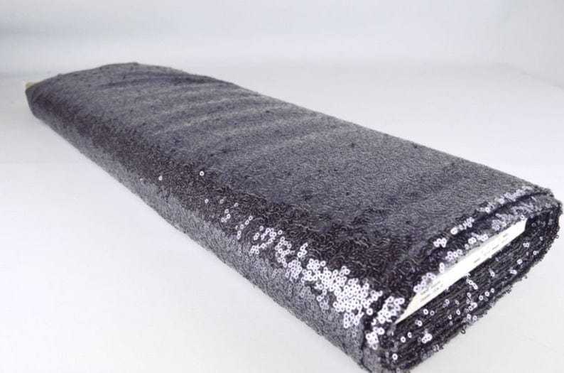 MØRKEGRÅ PAILLETSTOF – SMÅ 3–4 MM PAILLETTER & ENVEJS STRÆK