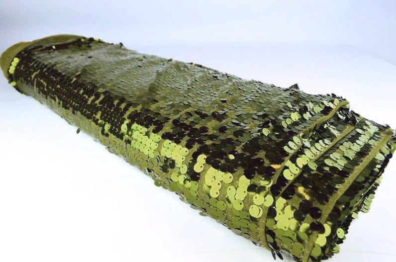 MOSGRØN PAILLETSTOF – STORE 8 MM PAILLETTER & ENVEJS STRÆK