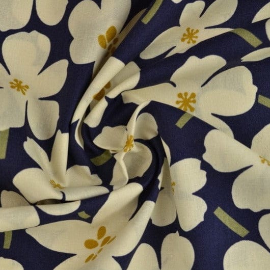 NAVY BOMULDSPOPLIN M. HVIDE ANEMONER er restordret og sendes så snart det er tilbage på lager.
