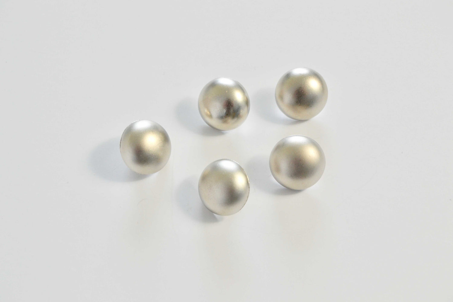 Sølv øjeknap. Knapperne er lavet af metal og har en diameter på ca. 16 mm.