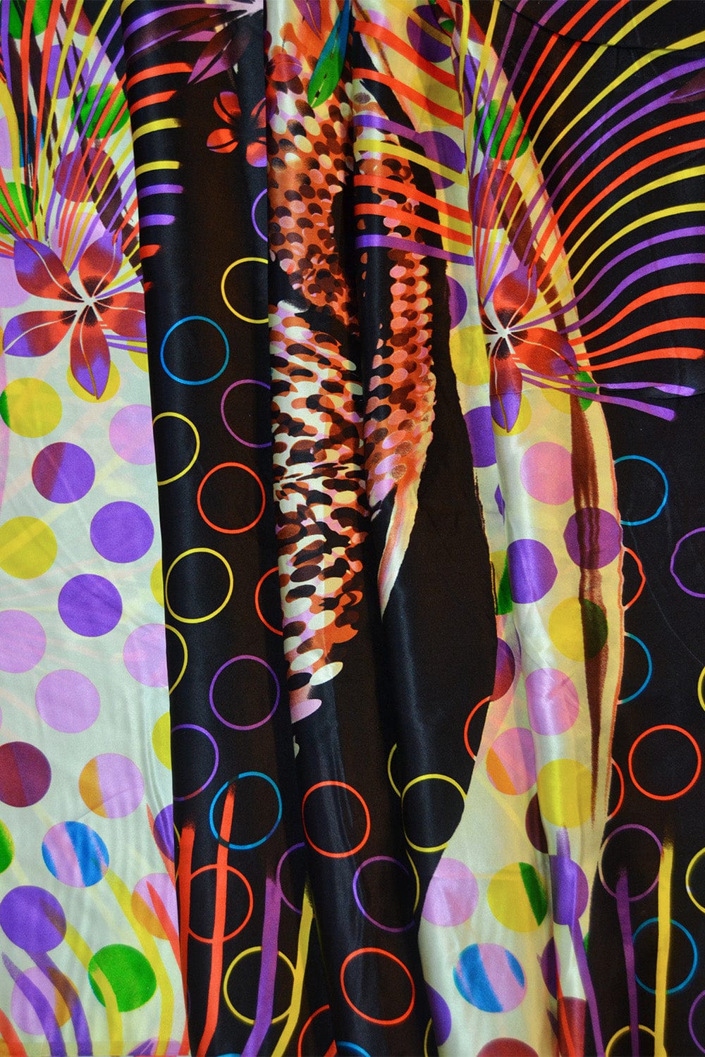 Leder du efter luksuriøst silkestof med print? Vores eksklusive silke er kendetegnet ved sin fantastiske glans, blødhed og lette kvalitet. Stoffet føles behageligt mod huden og er perfekt til elegant beklædning såsom skjorter, kjoler, tørklæder, undertøj og nattøj.