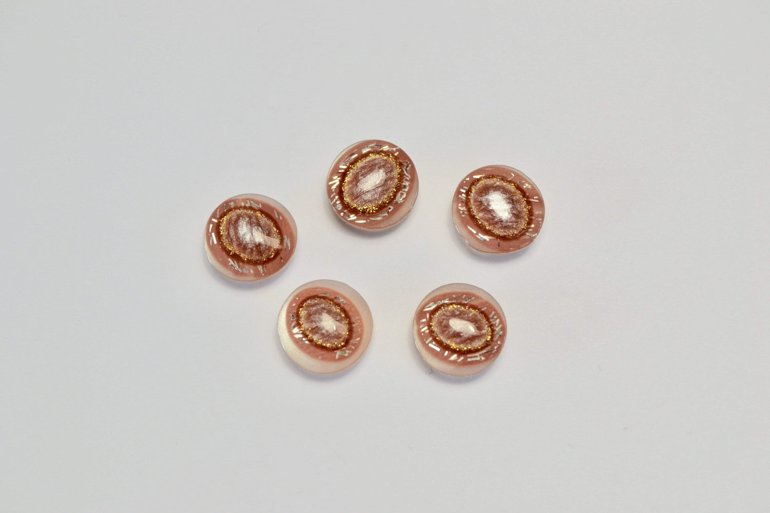 RØDE KNAPPER MED GULD GLIMMER 5 STK.