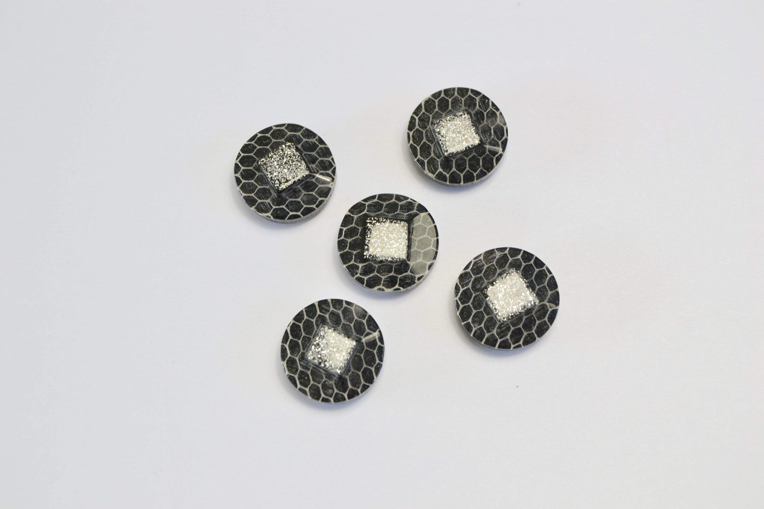SORTE KNAPPER MED SØLV GLIMMER 5 STK.
