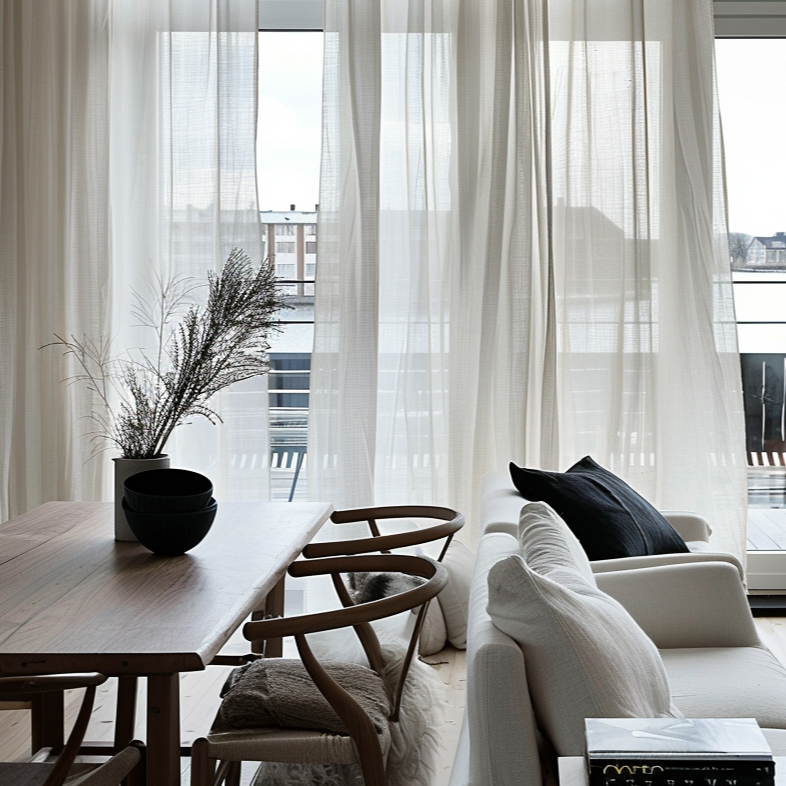 BRANDSKYDDANDE GARDINTYG I CHIFFON – TRANSPARENT ELEGANCE CHIC GARDINTYG I CHIFFON