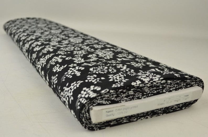 SVART BOMULLSPOPLIN MED FÅGLAR OCH BLOMMOR